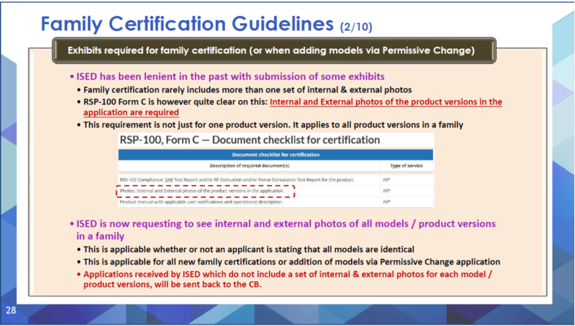 加拿大ISED在2022年10月24日至27日舉行的TCBC Workshop (The Telecommunication Certification Body Council Workshop) 中發(fā)布了對多型號產(chǎn)品申請認(rèn)證的最新要求:多型號/多產(chǎn)品版本申請加拿大ISED認(rèn)證時,要求每個申請的型號/產(chǎn)品版本都必須提供產(chǎn)品的內(nèi)部和外部照片。